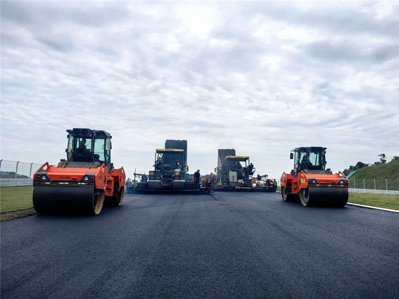 因此對(duì)于施工設(shè)備的性能和穩(wěn)定性,提出了極高的要求。經(jīng)過考察和多番論證,瀝青鋪設(shè)專業(yè)承建方四川高路遠(yuǎn)長(zhǎng)集團(tuán)(以下簡(jiǎn)稱“高路遠(yuǎn)長(zhǎng)“)最終采用了在全球多個(gè) F1 賽道建設(shè)中有著成功應(yīng)用的福格勒攤鋪機(jī)和悍馬壓路機(jī)的設(shè)備組合。