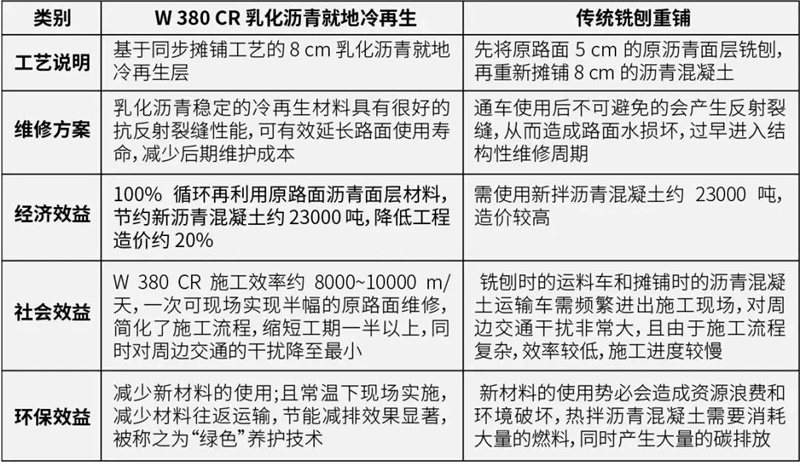 同時也展示了 W 380 CR 就地冷再生機多樣化的施工能力,不僅能勝任泡沫瀝青冷再生、水泥冷再生,同樣也適用于乳化瀝青冷再生,為綠色低碳道路養(yǎng)護提供了多種可行方案。